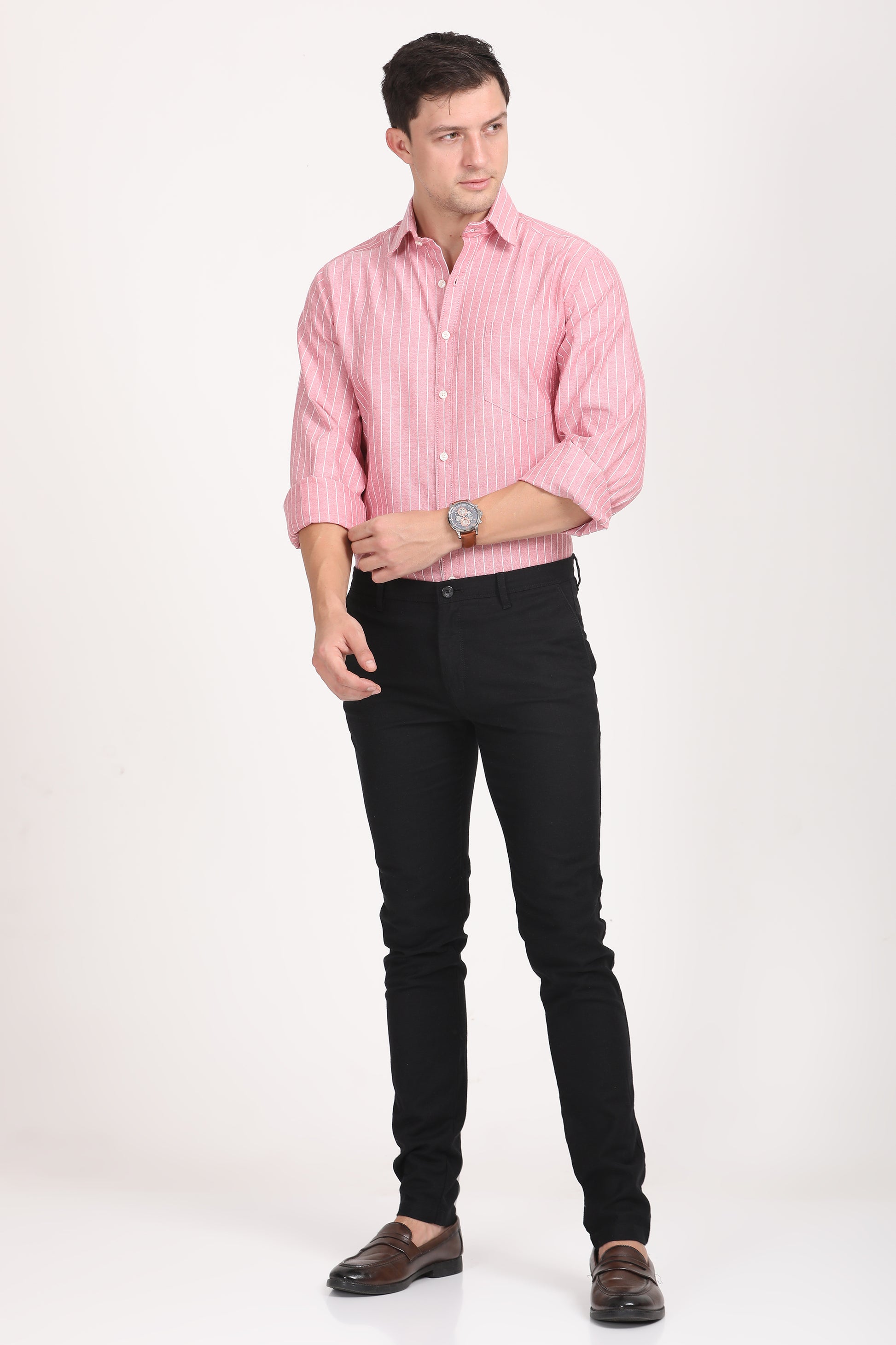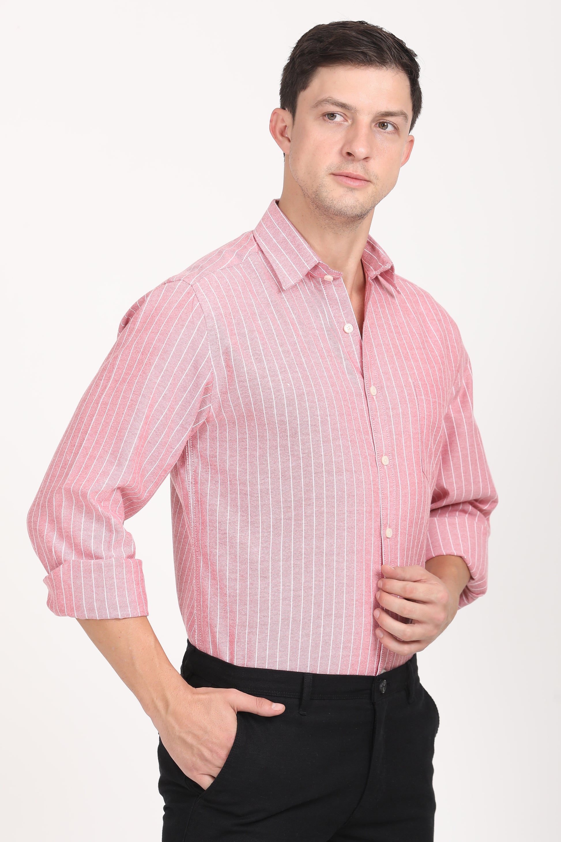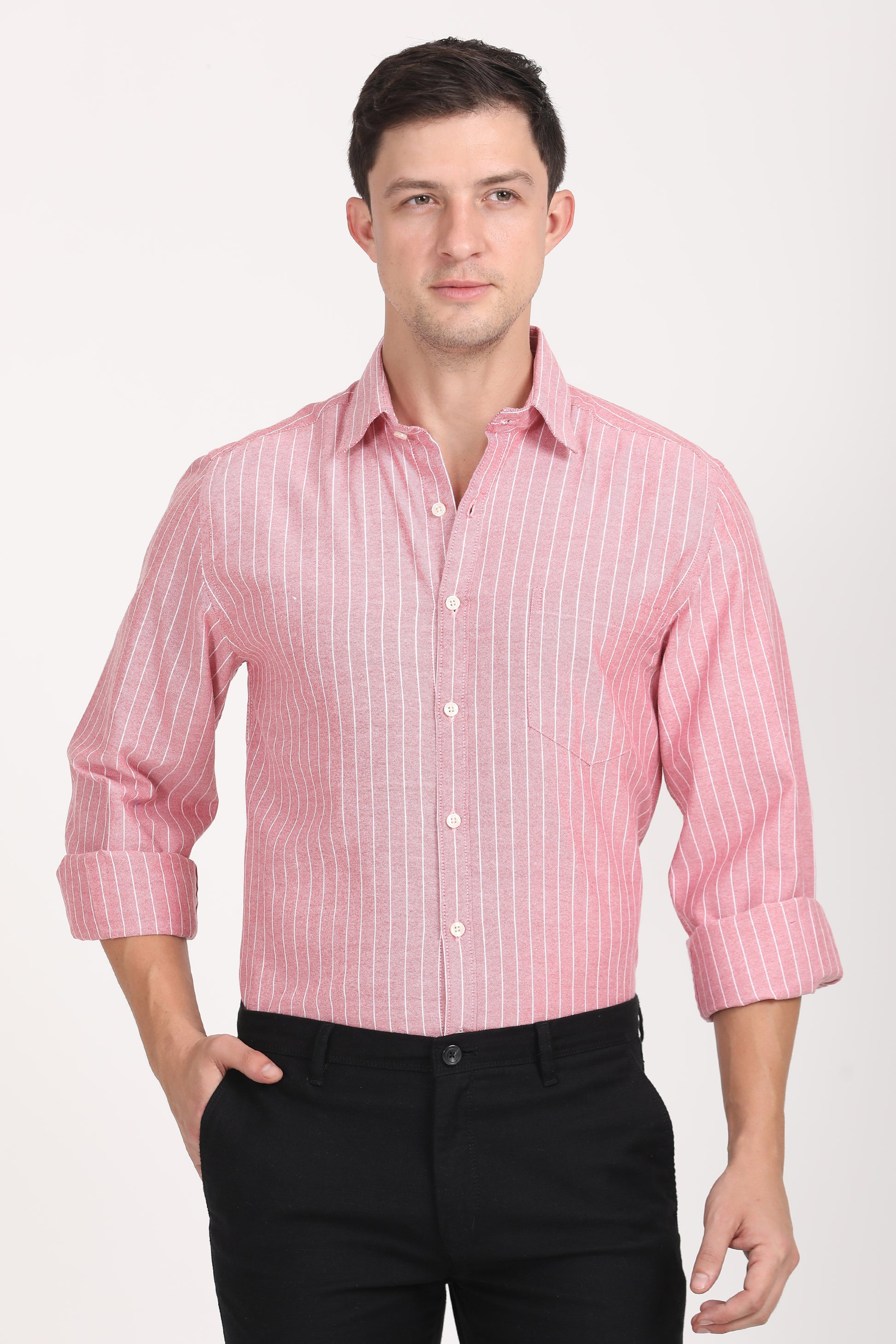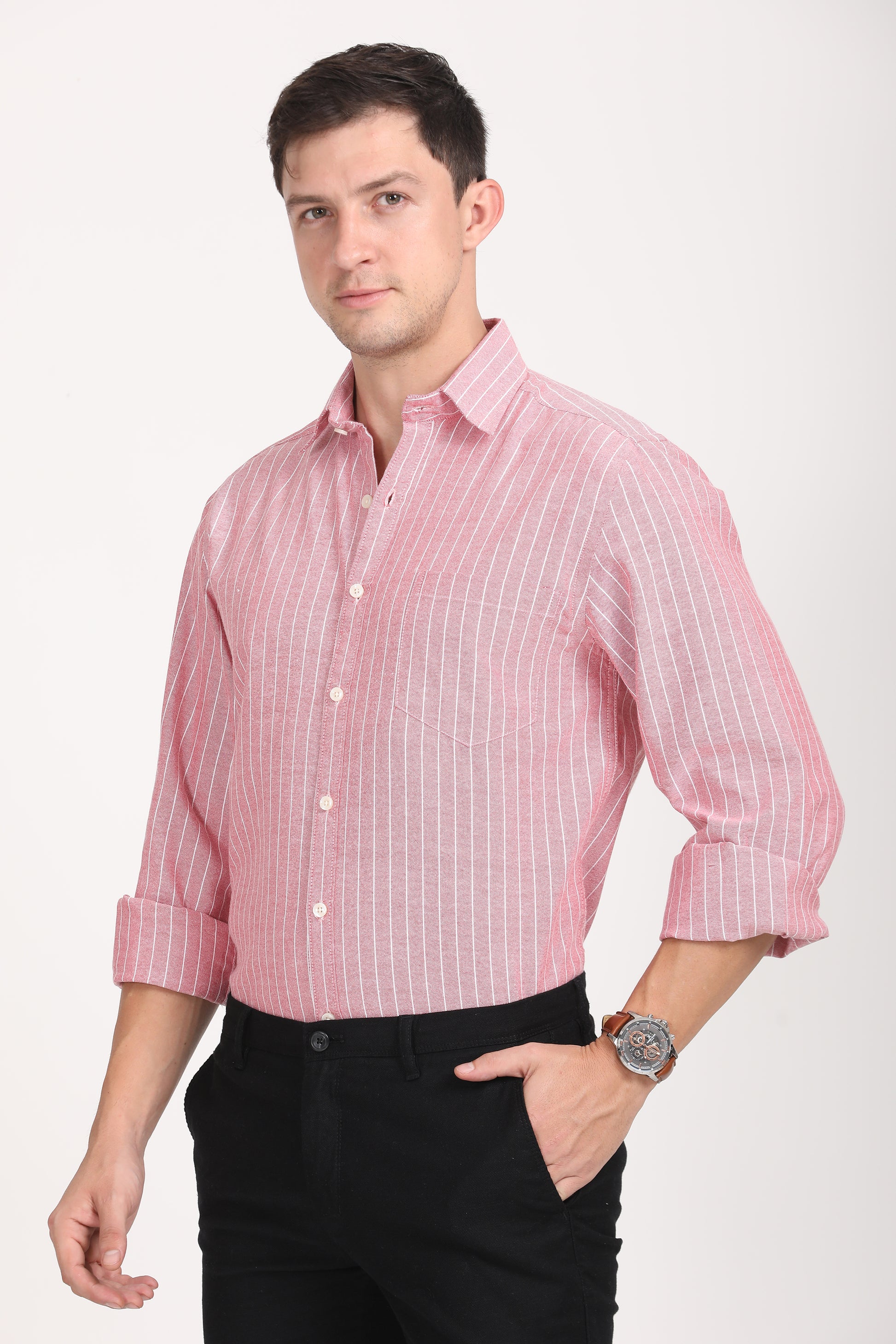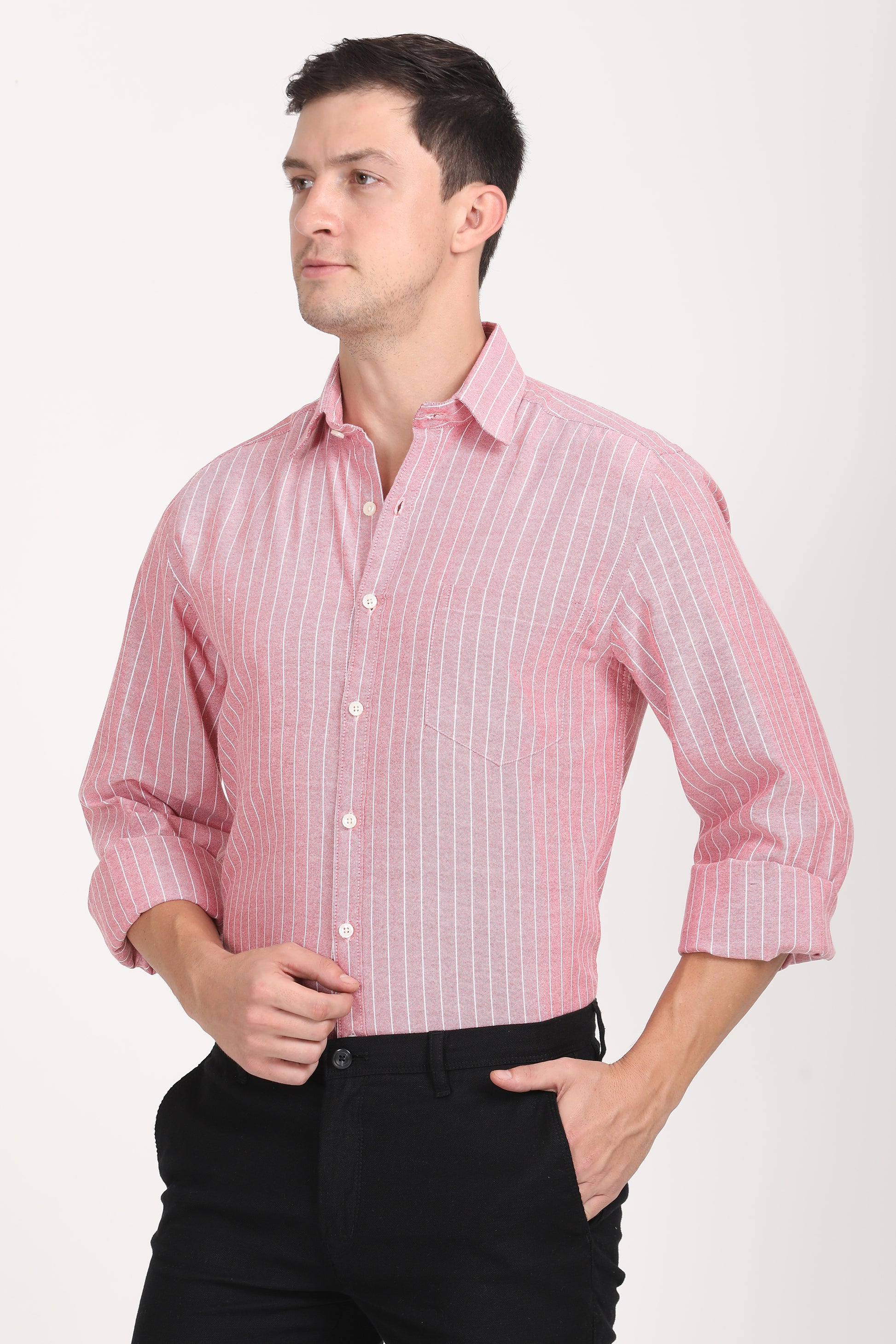This Copperline men's formal shirt is made with a cotton rich fabric, providing a comfortable and breathable fit. The light blue stripes add a touch of sophistication, making it perfect for any formal occasion. Elevate your wardrobe with this stylish and versatile shirt designed for men.