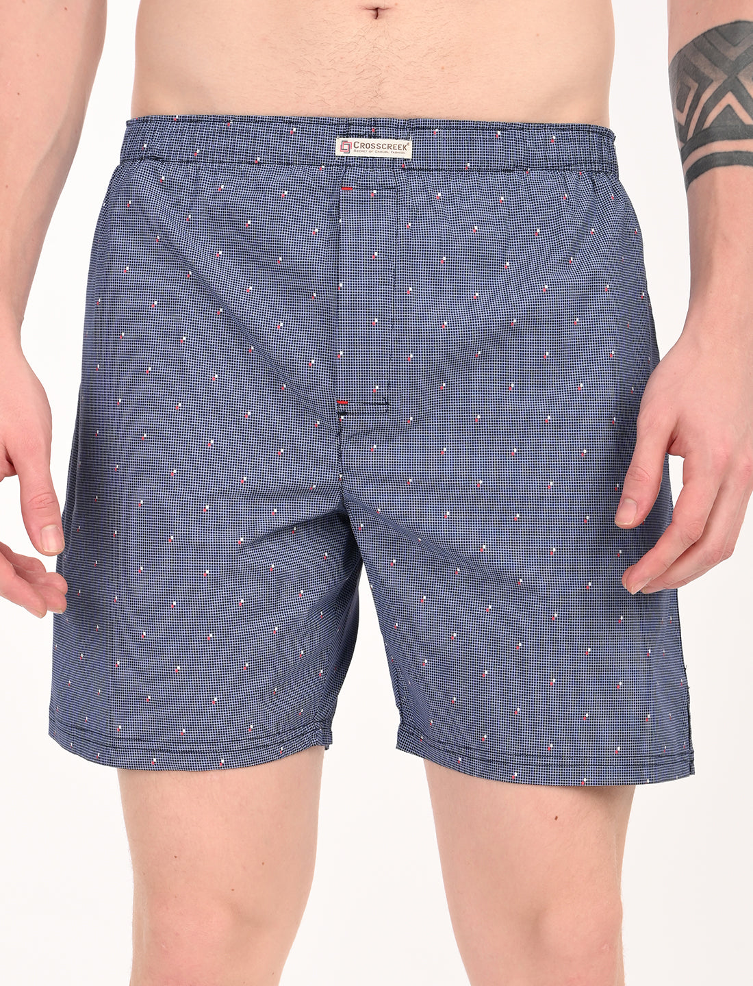 Crosscreek Men’s Boxer Shorts – 2-Pack | Blue Microdot & Black Graphic Print | Soft Cotton Essentials