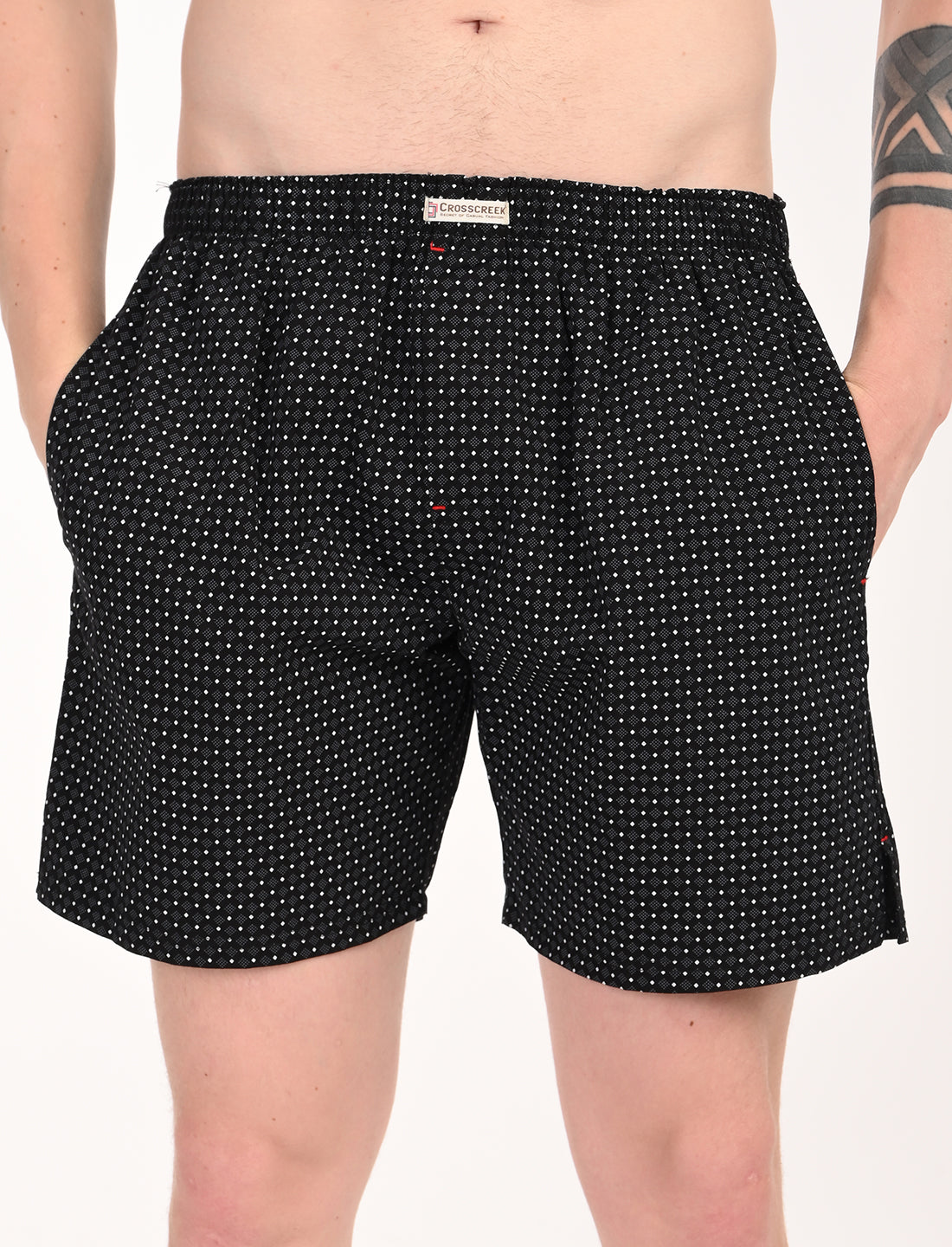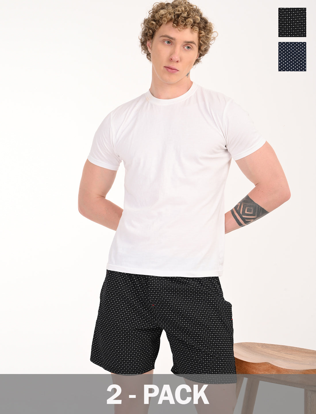 Crosscreek Men’s Boxer Shorts – 2-Pack | Black Dots & Navy Diamond Print | 100% Cotton Breathable Boxers
