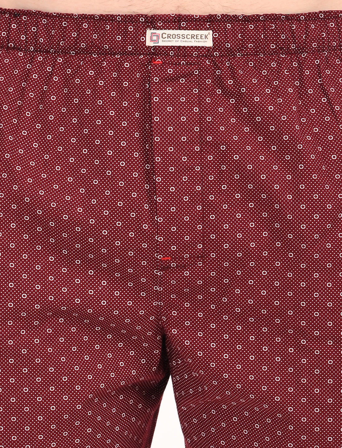 Crosscreek Men’s Boxer Shorts – 2-Pack | White Leaf & Maroon Circle Print | 100% Cotton Stylish Boxers