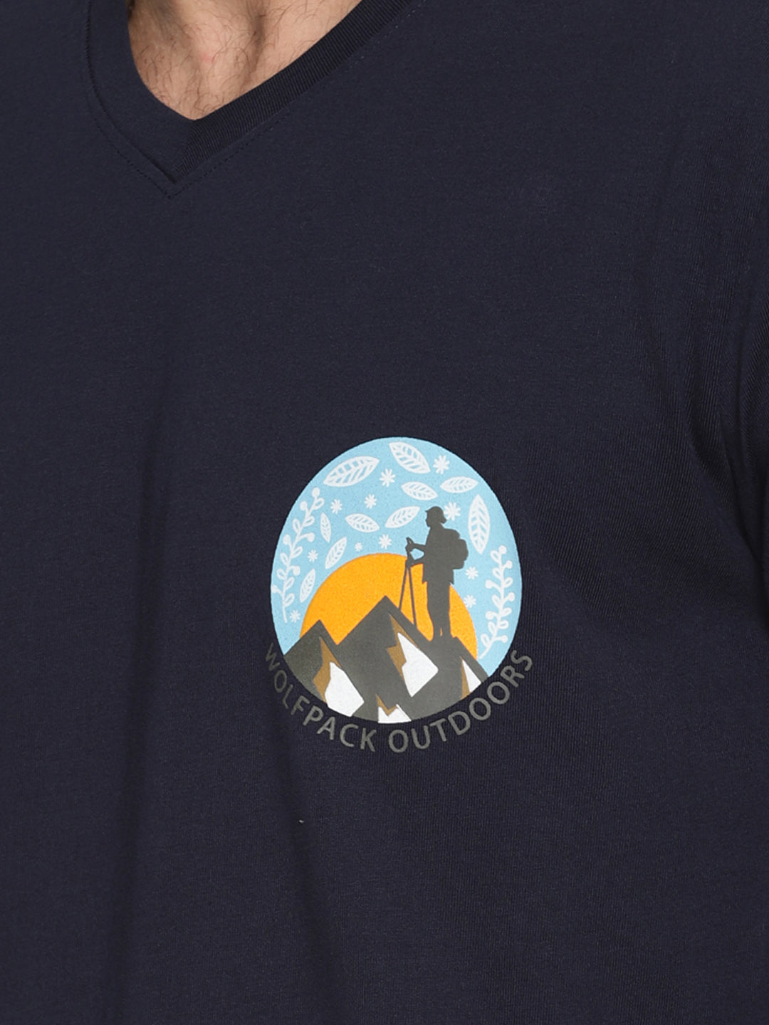 Wolfpack Navy Blue solid t-shirt, has a round neck, straight hem, full sleeves for ultimate comfort.